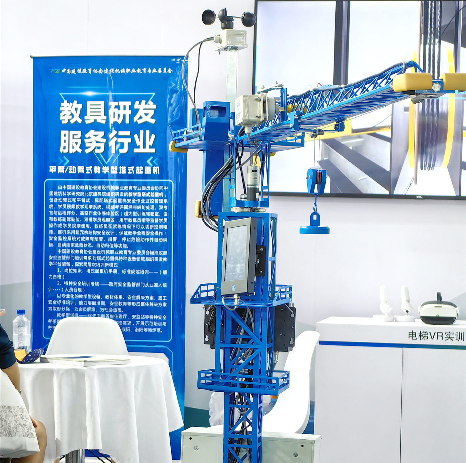 平臂/動(dòng)臂式教學(xué)專(zhuān)用塔式起重機(jī),標(biāo)配塔式起重機(jī)安全作業(yè)監(jiān)控管理系統(tǒng)、學(xué)員視頻教學(xué)觀摩系統(tǒng)、高空作業(yè)體感體驗(yàn)區(qū)等,整機(jī)采用超冗余結(jié)構(gòu)安全設(shè)計(jì),保證教學(xué)全程安全操作。本次展會(huì)展出的縮小比例的模型具有與真機(jī)相同的操作指令、動(dòng)作和安全監(jiān)控功能,可作為教學(xué)培訓(xùn)專(zhuān)用教具。